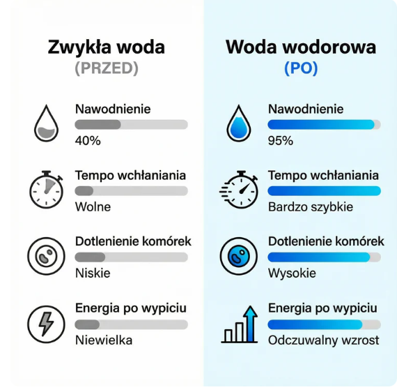 Picie wody wodorowej nawodni cię szybciej i sprawi, że poczujesz większą jasność umysłu i lepsze samopoczucie przez cały dzień